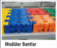 Modüler (plakalı) bantlar, kolay bakım ve onarım, yüksek hava geçirgenliği ve sıvı tahliyesi gereken hatlar için idealdir. Gıda, ambalaj ve montaj hatlarında sık kullanılır.